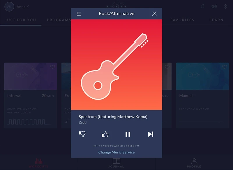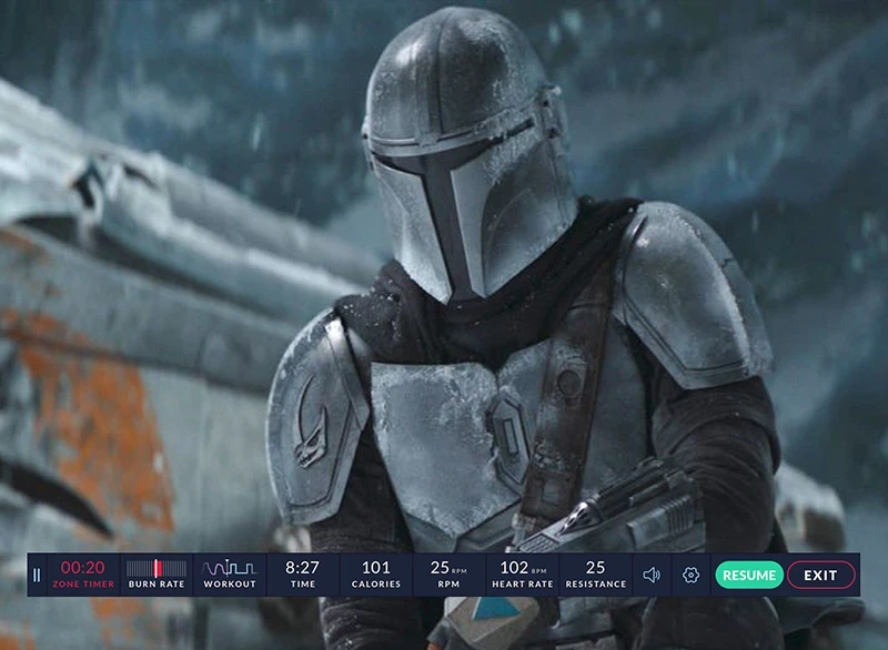 For supported embedded products, JRNY allowed users to watch streaming content while maintaining light coaching through unobtrusive metric overlays.