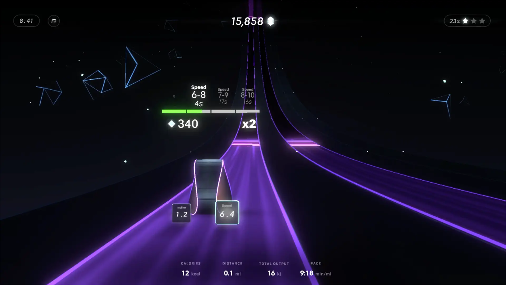 We ran frequent internal playtests to evaluate readability and timing at speed. We simplified pacing cues, increased contrast during lane shifts, reduced unnecessary animation, and tuned colors to stay visible in peripheral vision while moving. Each iteration made the experience more intuitive in motion and more responsive to real treadmill behavior.